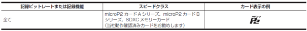 SDXCメモリーカード、64GBのmicroP2カードが使用できます。