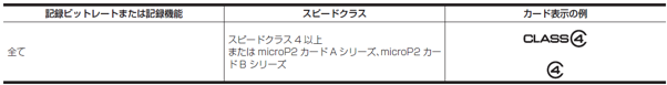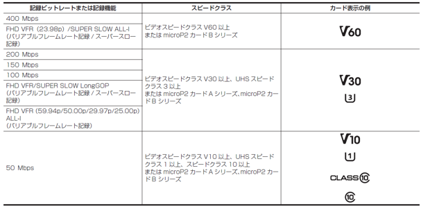 ・記録モードや記録フォーマットにより、使用するメモリーカードが異なります。 詳細は下表をご確認ください。